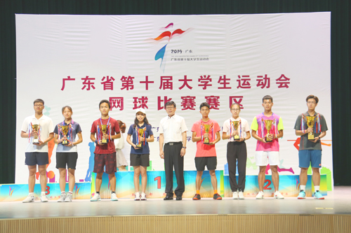 5月16日下午,广东省第十届大学生运动会网球赛乙组颁奖仪式在best365官网体育馆网球馆举行。