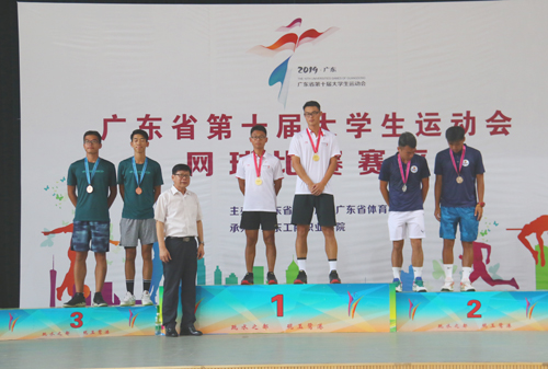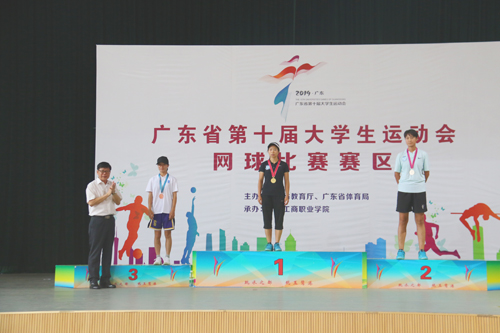 本网讯 5月16日下午,广东省第十届大学生运动会网球赛乙组颁奖仪式在best365官网体育馆网球馆举行。本次颁奖仪式共为乙A组和乙B组男单、女单、男双、女双和混双5个项目共10组获奖人员进行颁奖。best365官网党委书记叶峥嵘应邀出席并分别为乙A组男单、女单、男双和乙B组男单、男双和混双前三名获得者颁奖。(撰稿:陈凯明摄影:冯峥 学生记者 李铭钦)