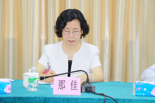 图为谢俐在发表讲话