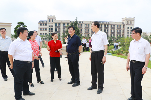 谢俐一行达到学校后,在肇庆市人民政府副市长陈宣群、肇庆市教育局局长彭银祥,best365官网董事长谢建平、副董事长莫秀全和学校党政领导的陪同下,从正大门进入,沿着学校中轴线行至文博馆、新图书馆,然后参观了体育馆;在财经商贸实验实训中心,考察了物流标准化公共实训中心;最后到达行政楼,看着沙盘,听取董事长关于学校总体建设的介绍。