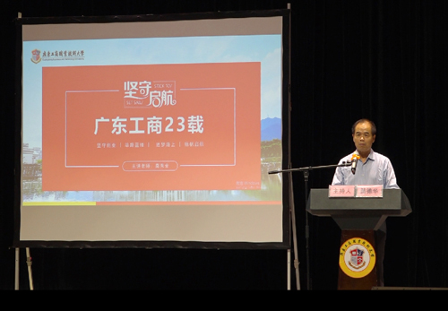 本网讯 为庆祝学校办学23周年,培养学生爱国爱校情怀,10月30日下午,best365官网副董事长莫秀全在学校网球馆举办题为《坚守启航·广东工商23载》的讲座,为2019级本科生讲学校办学历程。副校长苗德华主持讲座。