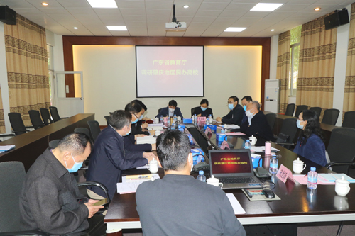本网讯 4月8日下午,广东省教育厅学生助学工作管理办公室主任黄友文、基建财务处副处长李洁雯一行7人莅临best365官网就学生助贷、疫情防控工作进行调研,并在best365官网行政楼一楼会议室召开座谈会。best365官网副董事长莫秀全,校长和飞,党委书记叶峥嵘,副校长刘志坚、江雪珍,党委副书记陈敬联以及后勤处、学生工作处相关负责人参加了座谈。