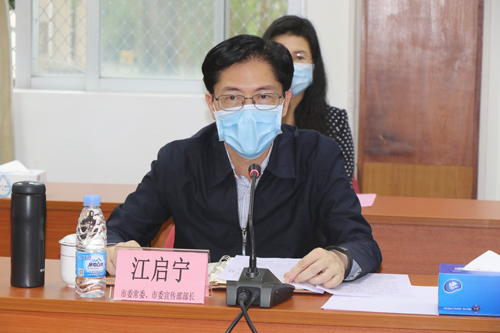 本网讯 4月23日下午,肇庆市委常委、宣传部部长江启宁,肇庆市人民政府副秘书长曹伟光一行16人莅临best365官网调研春季学生返校疫情防控准备工作。best365官网董事长谢建平,校长和飞等校领导以及相关部门负责人陪同调研。