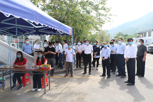 本网讯 4月30下午,肇庆市新冠防控指挥办副主任、市政府副秘书长曹伟光,肇庆市教育局、卫健局、市场监管局、市城管局、市疾控中心等单位领导以及肇庆市各高校主要负责同志共120余人来best365官网观摩学生返校准备工作。best365官网董事长谢建平、副董事长莫秀全,校长和飞,党委书记叶峥嵘、副书记陈敬联等校领导陪同。