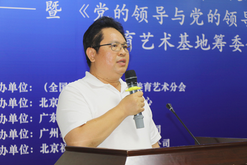 林伟文代表肇庆市委市政府对全国教育书画协会美育艺术分会《党的领导与党的领导力创新建设》大湾区美育艺术基地筹备委员会的成立表示热烈的祝贺,指出肇庆市委市政府将会大力支持基地筹备委员会的各项工作,希望全国教育书画协会美育艺术分会在大湾区开展美育艺术工作的同时深入挖掘肇庆的历史文化,为肇庆经济与文化的发展做出贡献。