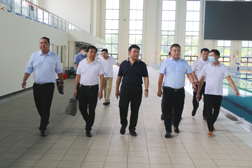图为何凯一行在校领导的陪同下参观体育馆