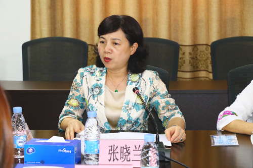 谢建平在致辞讲话代表学校介绍了广东工商职业职业技术大学25年来的艰难办学历程,当前学校的办学规模等情况,同时以肇庆市女企业家协会会长的身份向省调研组介绍了协会23年来的创会历程以及助力区域经济发展方面作出的贡献和取得的成绩。