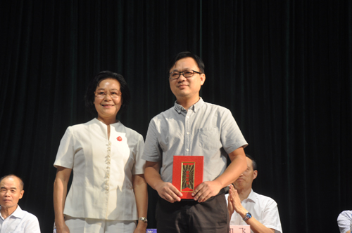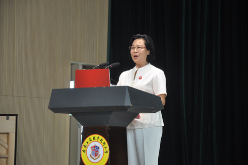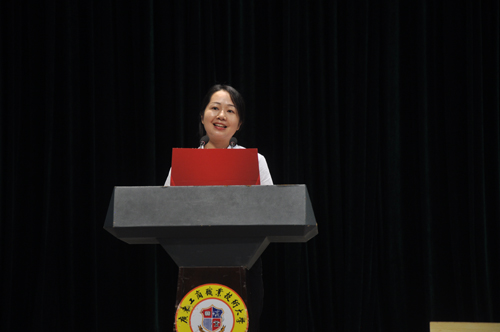 接下来,余庆兰代表优秀教师发言,感谢学校领导的精心栽培和同事们的信任和支持。她表示会继续严格要求自己、爱岗敬业、坚守学术本真,用爱与责任经营好自己的职业生涯,以人民教师特有的人格魅力、学识魅力赢得社会的尊重,为学校,为教育事业奉献自己的力量。