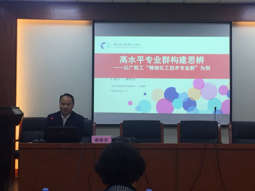 廖俊杰教授讲座的题目是“高水平专业群构建思辨——以广轻工“精细化技术专业群为例”,从高水平专业群构建背景、构建思辨、优化与动态调整三方面展开,用图文并茂的形式阐述了从专业群的遴选依据、遴选指标、积极申报、四大原则、设计构想、组群逻辑、对标条件、形成架构、目标任务、建设举措等十个方面的具体做法,介绍了专业群组建跨界的重要性,同时也明确了专业群优化及专业动态调整预警机制和专业群之外的专业如何发展。讲座还以广轻工两个国家级高水平专业群为例进行了典型案例讲解。