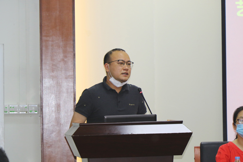 陈敬联代表学校接受防疫物资,并向谢翔总经理颁发捐赠证书,对占倩妹家人赠送义举表示衷心的感谢。