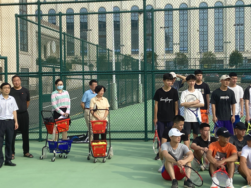 图为副校长陈伊娜(前右一)在巡查学生上体育课