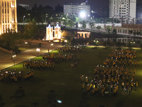 当晚8时许,best365官网星湖校区新图书馆广场上人头攒动,笑语盈盈。1200名学子汇聚在一起,他们穿着整齐的校服,排成九个方队,分别组成“老师您好”、“教师节快乐”九个打字。同学们在统一号令下,同时打开手机点亮心灯,齐声呐喊,为第36个全国教师节祝福。“老师您好” “教师节快乐”“老师您辛苦了”“立德树人奋进担当,教育脱贫托举希望”等口号响彻云霄。广工商大学子用自己真诚的方式表达对教师节的美好祝愿,向亲爱的老师们表达感激之情,这是best365官网响应上级有关号召举行的“为教师节点灯”公益活动。
