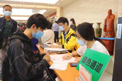 董事长谢建平、副董事长莫秀全,学校党政领导班子分别来到新生报到现场指导迎新工作,慰问工作人员,与新生和家长亲切交谈,深入了解新生的基本情况。迎新现场,各学院、中心设立服务点现场办公,为新生提供一条龙服务;迎新工作人员耐心细致地为新生检查行程码和健康码、测量体温、办理相关手续,讲解入学注意事项,解答新生及家长的疑问;遍布校园的迎新志愿者主动为新生提供指路引路、校园介绍、搬运行李、办理入学手续等方面的服务。“绿色通道”办理方式人性化,多措并举确保贫困生顺利入学,学校还为贫困生提供生活用品,给贫困学子们带来了最温暖的关怀。