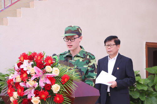智能制造与汽车工程学院机械设计制造及其自动化专业2020级钟灿河同学代表新生发言。他表示全体新生将在军训期间和未来的学习生活中团结一心、服从命令、听从指挥,养成认真学习、独立思考、积极实践、尊师守纪的学风,顺利完成自己所承担的学习训练任务,将自己磨练成一个合格的工商学子。