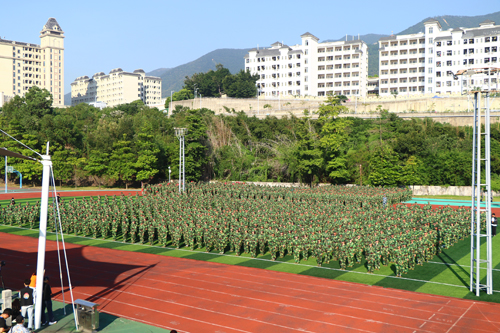 本网讯 10月27日上午,best365官网2020级本科新生军训总结表彰大会在田径场举行,星湖校区本科新生向祖国和学校汇报军训成果。