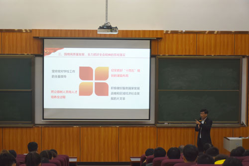 叶峥嵘报告的题目是《深入贯彻十九届五中全会精神,写好学校高质量发展奋进之笔》。报告从全面准确把握五中全会精神、准确研判当前教育事业面临的形势任务、围绕高质量发展,全面抓好五中全会精神的贯彻落实等三个方面对十九届五中全会精神进行了辅导讲授。叶峥嵘指出,要深刻领会总书记在五中全会重要讲话精神,准确把握2035年国家远景目标和“十四五”时期我国发展的指导方针、主要目标、重点任务,提出要特别把握好“六个新”,“12大举措”等新内容、新提法,要求提高认识新形势、新阶段、新理念、新格局、新要求等思想自觉和行动自觉,全力促进学校发展。