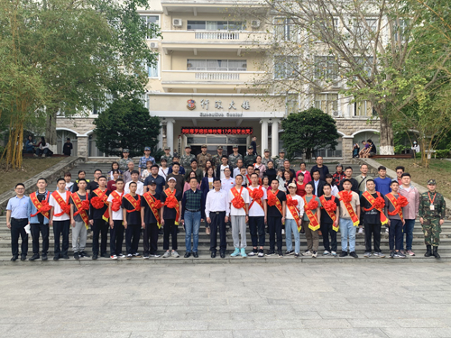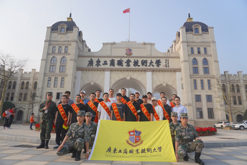 图为全体入伍新兵在校门口合影