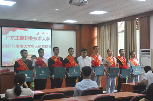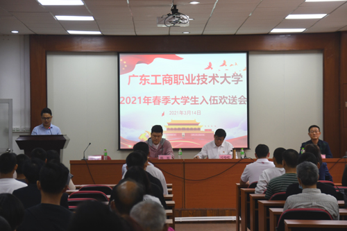 会议开始,全体与会人员起立,奏唱国歌。刘伟东宣读学校《2021年春季新兵入伍大学生名单》。叶峥嵘为入伍新兵佩戴绶带、大红花与赠予入伍新兵欢送礼品。