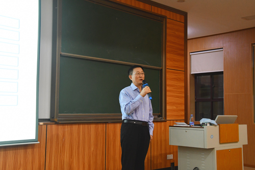 图为张金柱在讲座中
