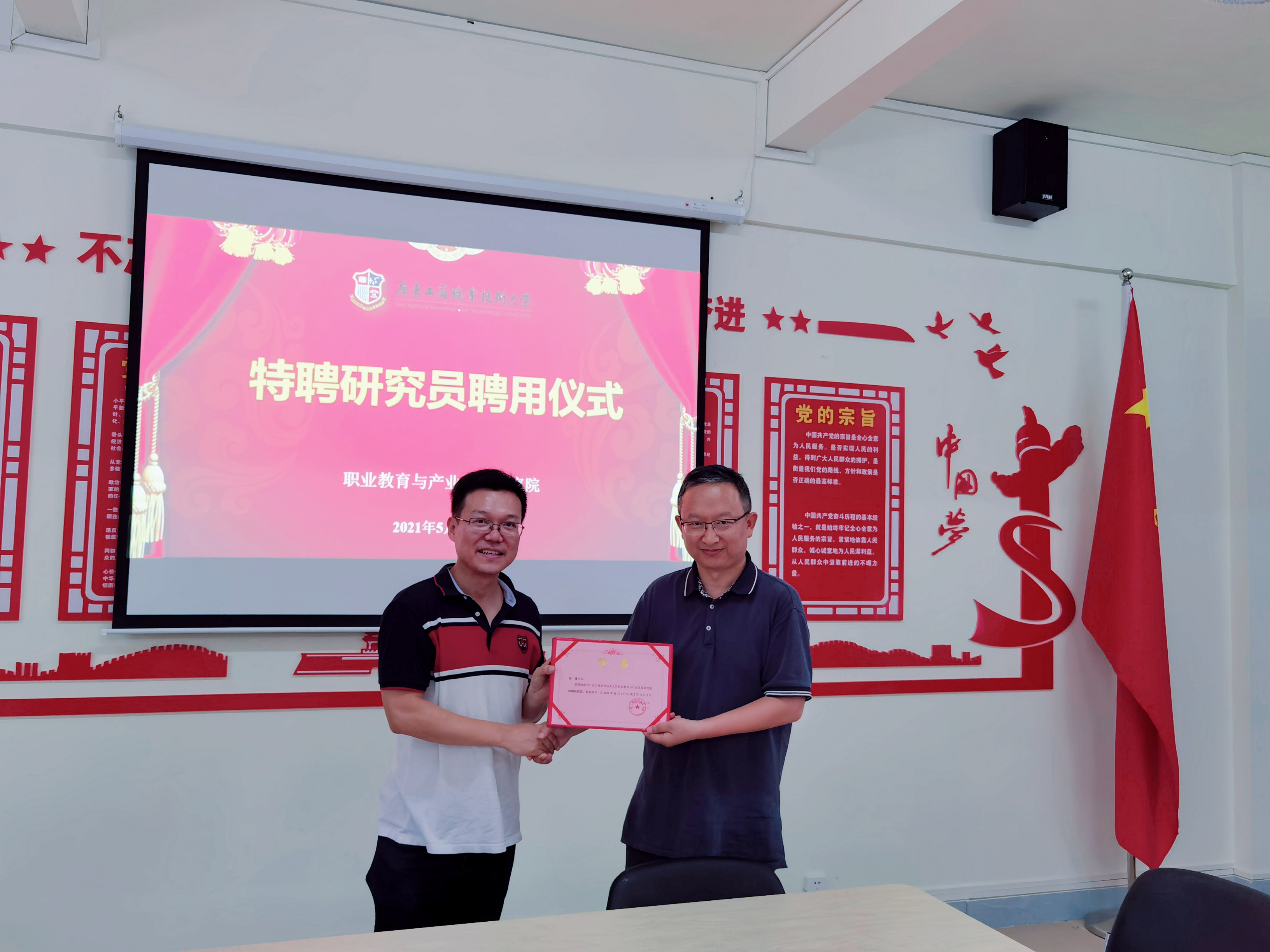 图为方校长为特聘研究员赵锋颁发聘书