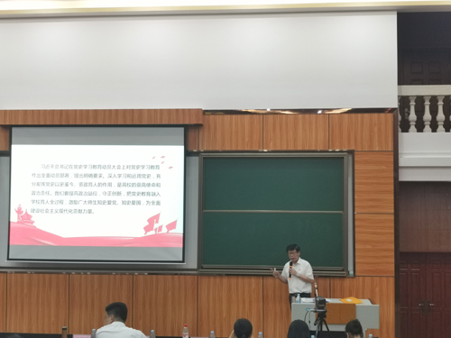 随后,叶峥嵘书记为本次青马学员讲授了党史教育学习第一课。授课中,叶书记将中国共产党的历史分为四大阶段进行讲述,并在其中引入许多生动事例帮助学生更好体认党的发展及奋斗史,以此引入“学党史、悟思想、担使命”的重要意义。同时,结合广东甚至是肇庆在党的历史发展中所起到的重要作用,希望同学们能积极了解、挖掘当地的历史文化,真正做到学史力行,为全面建设社会主义现代化国家贡献青春力量。