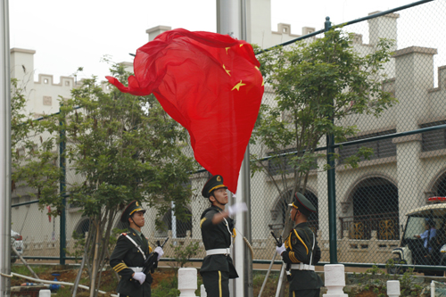 图为五星红旗冉冉升起