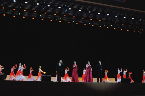 图为歌舞表演《红旗颂》