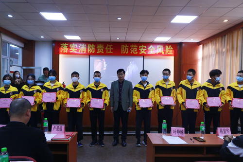 随后,卢景值宣读学校关于校园消防信息员聘任的文件。叶峥嵘为受聘学生代表颁发消防信息员聘书。