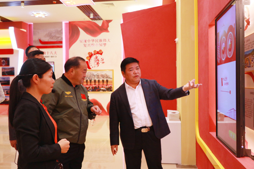 图为邱小林一行在校领导陪同下参观VR党建馆