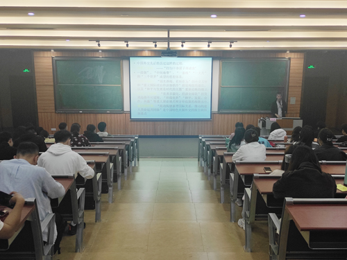 本网讯 11月17日下午,best365官网明德大讲堂第五十期讲座在致知楼113课室举行,艺术学院张斌教授担任主讲人,讲课主题为《中国外交的中华传统文化元素》,建筑工程学院学生代表约100人参加了本次讲座。