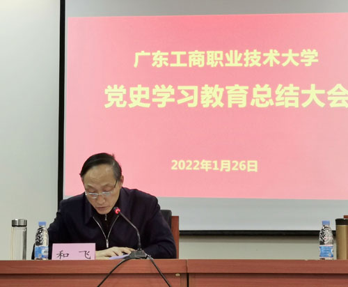 本网讯 1月26日,按照上级党史学习教育工作的有关安排,学校召开党史学习教育总结会议。参加会议总结会议的有学校领导,各党政部门、教辅单位主要负责人,各学院(中心)院长(主任),各二级党组织书记、副书记及教职工代表共60余人。会议由校长和飞主持,党委书记叶峥嵘作学校党史学习教育总结报告。