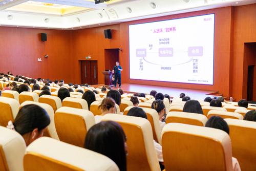 讲座中,李盼以唯品会为例,从物流管理的视角向师生们阐述了电子商务环境下人货场管理理集结,并结合自己亲身经历,分享了自身求职、创业经历和成长点滴。从人、货、场角度带同学们探索电商物流的奥秘,围绕“货”这个核心主题,以“标准中的差异化特色”、“电商新品发想模式”和“客户方的真实需求”三个方面进行专业分享,以此指导经销商站在品牌公司的立场,反向观看客户需求与反馈,从而提升企业产品的市场竞争力。