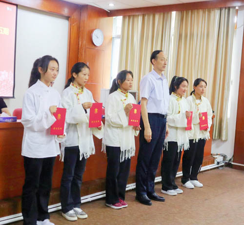 会上,副校长陈伊娜宣读《关于准予林芝市职业技术学校第四期、第五期培训班学员结业的决定》。校长和飞为访学师生颁发结业证书。