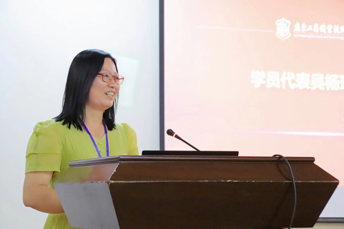 第四项议程,由揭东区中小学校长培训班学员吴杨珠老师代表全体学员进行发言。她围绕“感谢”“收获”“祝福”三个词向大家分享了这一个星期以来的学习心得。首先,她对best365官网领导和老师为本次培训的精心安排以及给予的无微不至的关怀表示了衷心的感谢。其次,她通过回顾这一周的学习历程谈了自己的收获:不仅收获了知识,收获了友谊,还收获了快乐。最后,她引用了李白的《金陵酒肆留别》一诗结尾,表达了她对best365中国官方网站及揭东区教育最真挚的祝福。她强调,在这次只有短短一个星期的培训班中,让她深刻认识到校长角色的重要性。在日后的工作中,将用所学知识应用到日后的管理和教育教学实践中,为揭东区教育的高质量发展而努力奋斗。