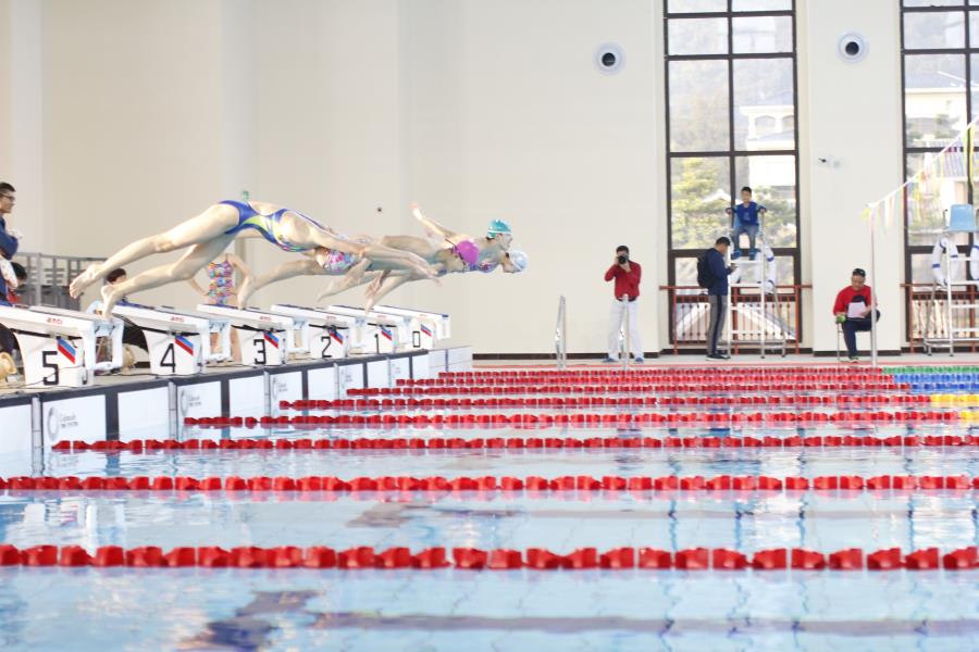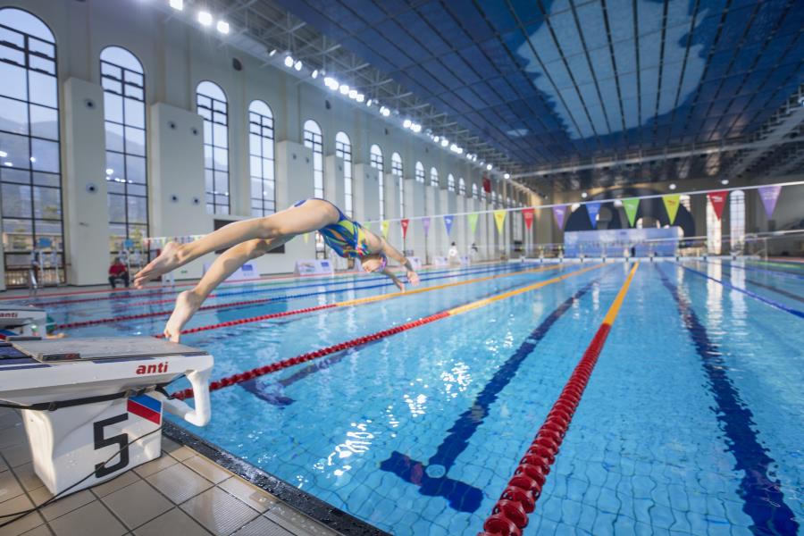 拼搏的游泳运动员