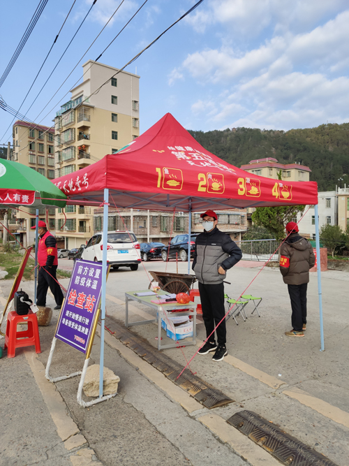 2月14日—16日,赖钲群广东省梅州市大埔县西河镇纯德村协助村委会在村口识别外来人员、登记外来人员及车辆的相关信息。