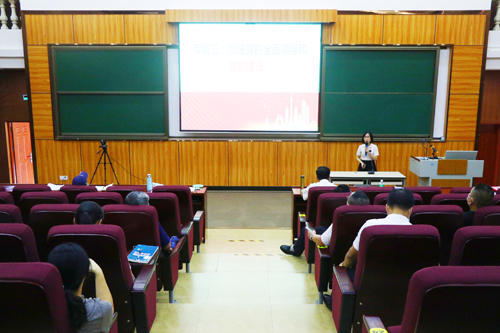 本网讯 7月15日下午,best365官网在明辨楼213室举办学习贯彻省第十三次党代会精神培训班,学校党政领导、各学院(中心)及职能部门负责人、各二级党组织正副书记参加。党委书记叶峥嵘主持会议并作了动员讲话,马克思主义学院副院长梁伟莹分三个专题作了主题辅导。