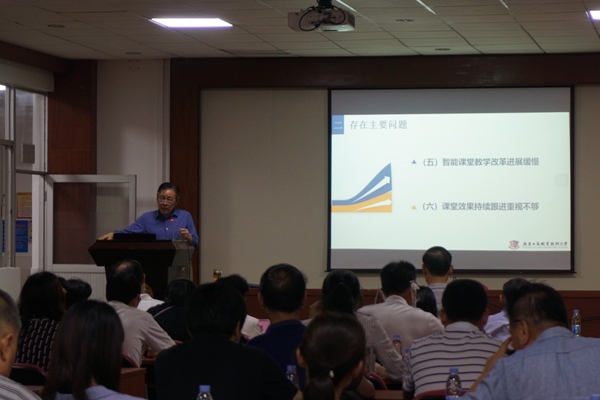 第二项议程,和飞校长作重要讲话。他对中共中央国务院印发的《深化新时代教育改革总体方案》中的“改革对学校的评价”、“改革对教师的评价”、“改革对学生评价”及“改革用人评价”的内容及重要性进行了深入解读。对进一步做好教学督导与评估工作提出了五点要求。一是树立质量监控的理念,建立质量监控保障体系;二是打造一支过硬的教学督导队伍;三是教学督导队伍要适应职业院校发展的需要;四是督导工作要围绕中心工作,服务学校大局;五是坚持全过程、全方位督导。